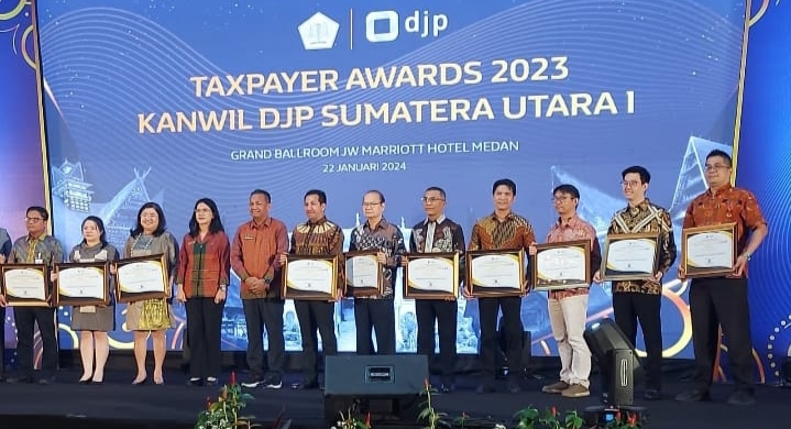 GIMIC.ID, Medan - Perusahaan Umun Daerah (Perumda) Tirtanadi menerima peghargaan wajib pajak taat pelaporan Surat Pemberitahuan Tahunan (SPT) atau taxpayer awards untuk tahun 2023 yang dilaksanakan Kantor Wilayah (Kanwil) Direktorat Jendral Pajak (DJP) Provinsi Sumatera Utara (Sumut) di Grand Balroom JW Marriott Hotel Medan Senin (22/1/2024).