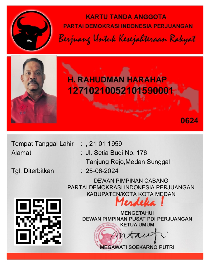 DPC Partai Demokrasi Indonesia Perjuangan (PDI-P) Kota Medan Membenarkan Rahudman Harahap Kader PDIP