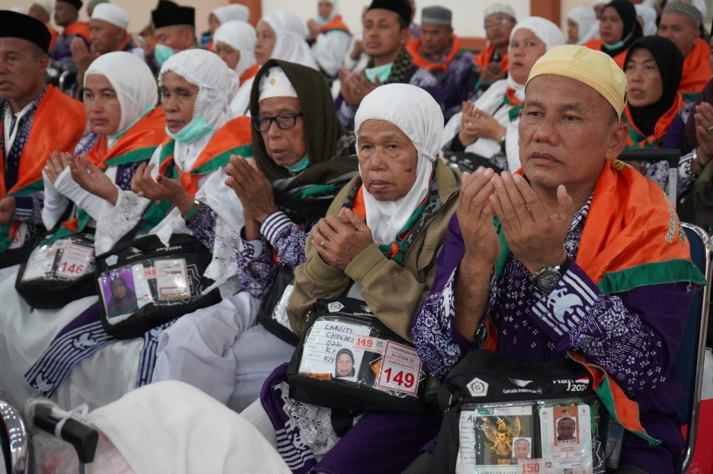 "Selama 40 hari bapak dan ibu melaksanakan rangkaian ibadah haji dengan penuh perjuangan di Madinah dan Makkah hingga melaksanakan puncak ibadah haji di Arafah, Muzdalifah dan MIna, semoga perjuangan tersebut menghasilkan haji mabrur,” ungkapnya.