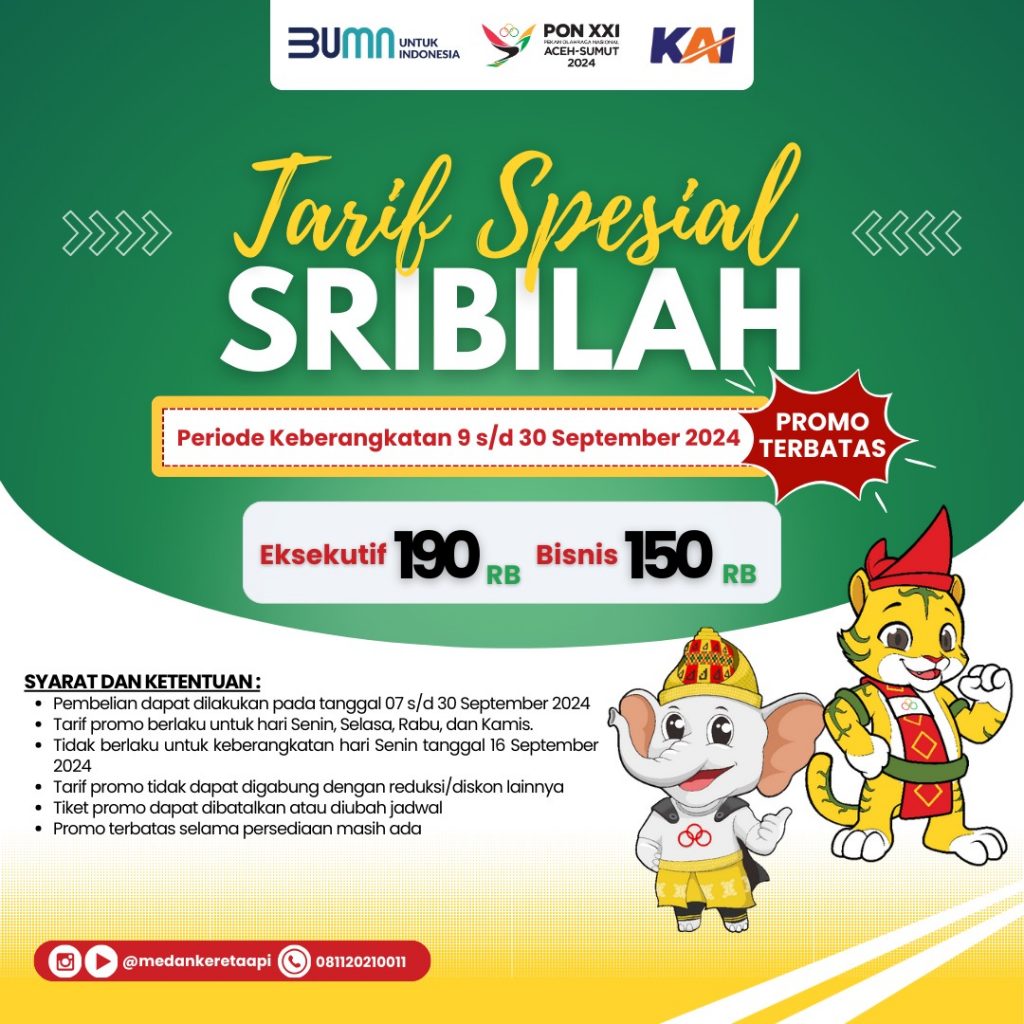Berikut syarat dan ketentuan harga spesial tiket KA Sribilah Utama dalam rangka mendukung PON XXI tahun 2024:
