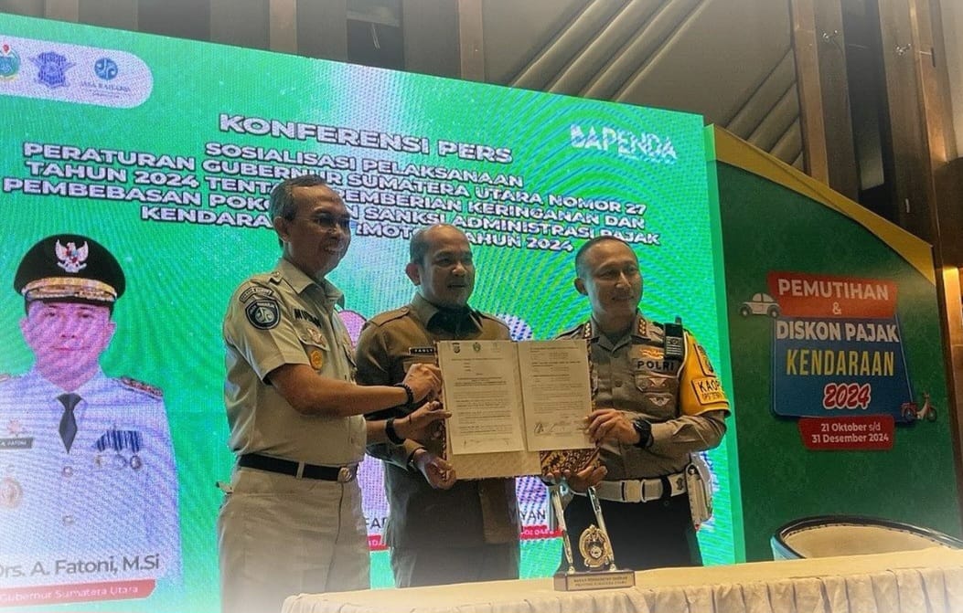 GIMIC.ID, MEDAN - Tim Pembina Sistem Administrasi Manunggal Satu Atap (Samsat) Sumatera Utara mengumumkan pelaksanaan program pemutihan pajak kendaraan bermotor yang akan berlangsung mulai 21 Oktober hingga 31 Desember 2024 pada kegiatan Press Conference yang diadakan di Hotel Le Polonia Medan pada Senin(21/10).