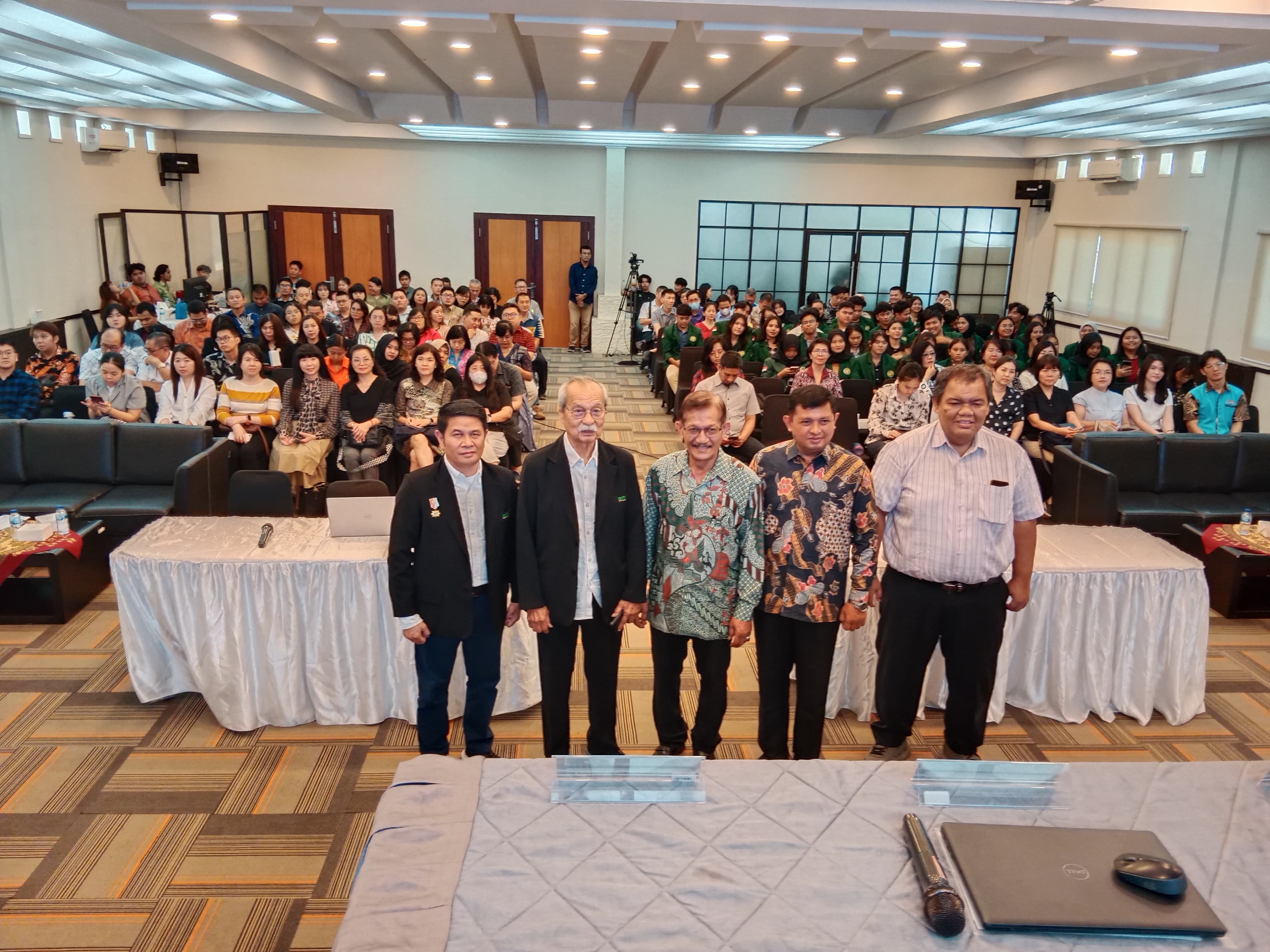 Wakil Dekan I Fakultas Vokasi USU M.Husni Thamrin berfoto bersama dengan Sekretaris Pengda IKPI Sumbagut Syaflul dan Ketua Pengcab IKPI Medan Terpilih Ebenezer Simamora dan para peserta didampingi Ketua Prodi D3 Adm.Perpajakan USU Faisal Eriza dan Staf Tax Centre USU Indra Efendi Rangkuti
