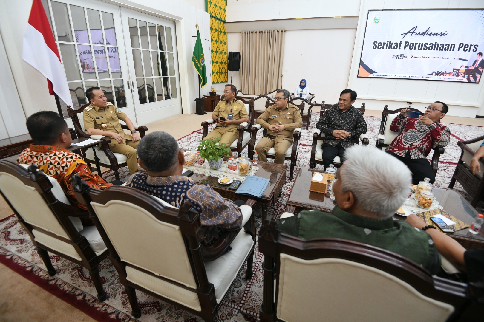GIMIC.ID, MEDAN - Penjabat (Pj) Gubernur Sumatera Utara (Sumut) Agus Fatoni menyampaikan bahwa pers memiliki peran yang sangat penting dan strategis dalam mewujudkan harmoni dan suasana kondusif di tengah masyarakat Sumut. Hal itu disampaikannya saat menerima kunjungan Serikat Perusahaan Pers (SPS) Sumut di Rumah Dinas Gubernur Sumut, Medan, Sumut, Senin (11/11/2024).