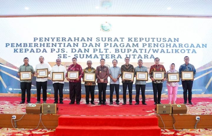 GIMIC.ID, MEDAN - Penjabat (Pj) Gubernur Sumatera Utara (Sumut) Agus Fatoni memberikan penghargaan kepada Pelaksana tugas (Plt), Penjabat (Pj) dan Penjabat sementara (Pjs) bupati/walikota se-Sumut. Ini sebagai bentuk apresiasi Pemerintah Provinsi (Pemprov) Sumut atas pengabdian mereka di daerah masing-masing.