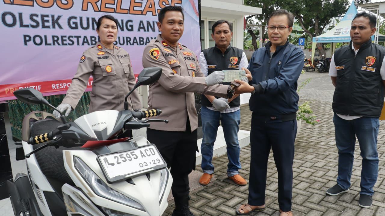 Kapolsek Gunung Anyar Kembalikan Motor Hasil Curian, Korban berikan Apresiasi dan Ucapkan Terimakasih