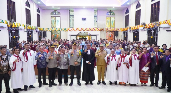 “Kami ingin memastikan seluruh rangkaian perayaan Natal berjalan aman dan lancar. Momen ini adalah wujud sukacita yang harus kita jaga bersama,” ujar Pj Bupati Faisal Hasrimy kepada jemaat yang hadir.