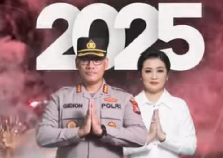 "Saya Kombes Pol Gidion Arif Setyawan, Kapolrestabes Medan dan istri saya Luciana Gidion, Ketua Bhayangkari Kota Besar Medan, atas nama institusi dan pribadi mengucapkan selamat Tahun Baru 2025 untuk masyarakat Kota Medan," ucapnya.