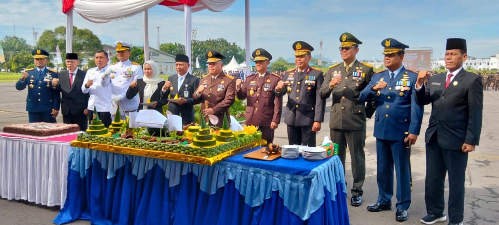Sejumlah pejabat Forkopimda Sumatera Utara bersama Kajati Sumut Dr. Harli Siregar menghadiri upacara HARLAH ke-80 Kejaksaan RI di Lanud Soewondo Medan, Selasa (2/9/2025).