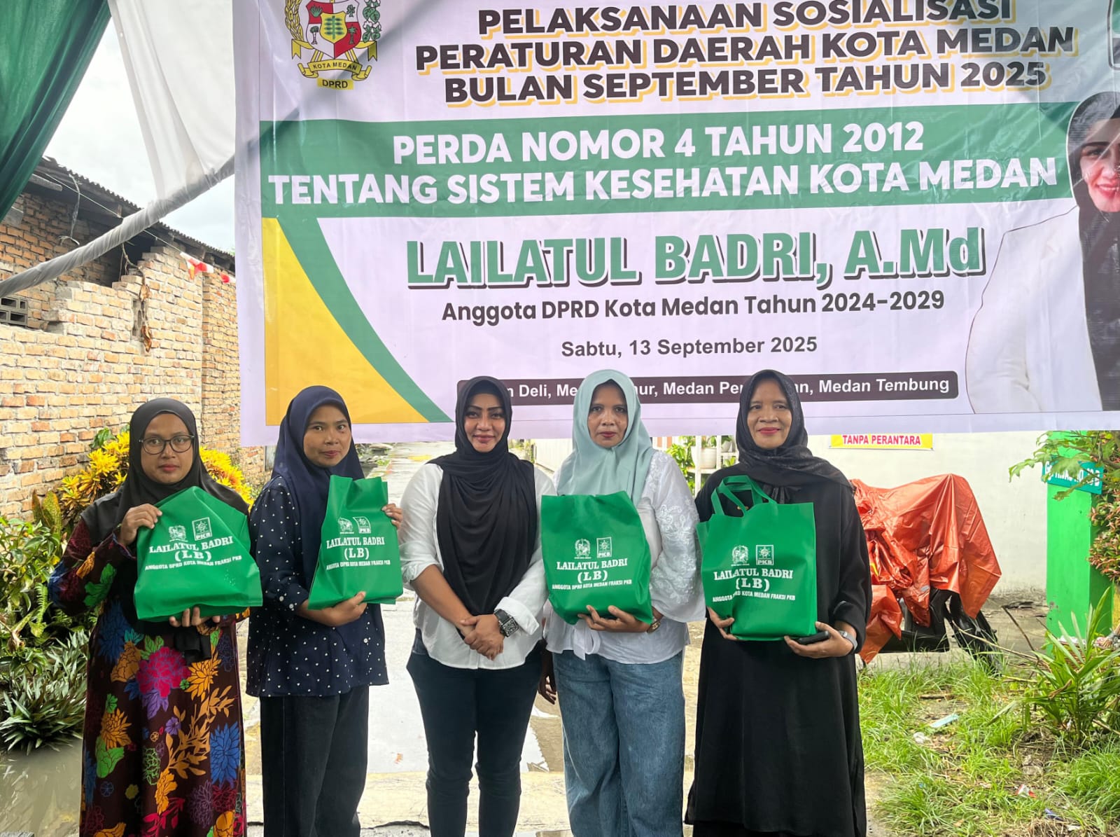 Pernyataan tersebut disampaikan Lailatul saat menggelar Sosialisasi Peraturan Daerah (Sosper) No. 4 Tahun 2012 tentang Sistem Kesehatan Kota Medan di Jalan Al-Falah III, Kelurahan Glugur Darat I, Kecamatan Medan Timur. Setelah itu, politisi PKB yang akrab disapa Lela ini juga melanjutkan kegiatan serupa di Jalan Bono, kelurahan yang sama.