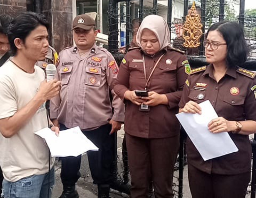 Perwakilan Kejatisu, Joice V. Sinaga, menerima aspirasi mahasiswa dan meminta PERMAK melengkapi laporan secara tertulis agar dapat diteruskan kepada Kepala Kejatisu, Harli Siregar.