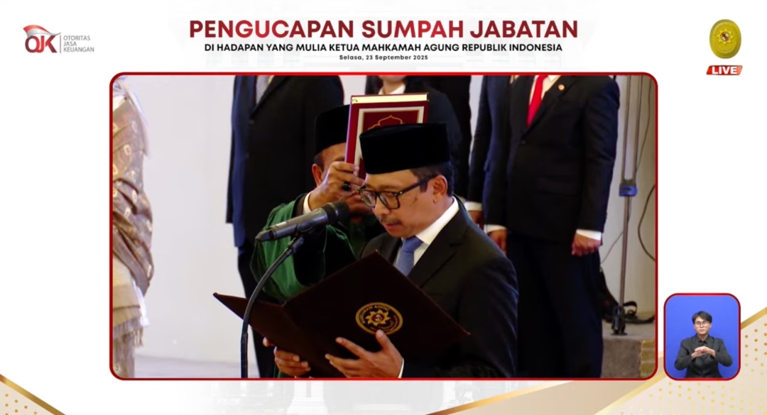 GIMIC.ID, JAKARTA – Mahkamah Agung (MA) Republik Indonesia secara resmi melantik Deputi Gubernur Bank Indonesia (BI) Juda Agung sebagai Anggota Dewan Komisioner (DK) Otoritas Jasa Keuangan (OJK) Ex-officio BI, Selasa (23/9/2025).