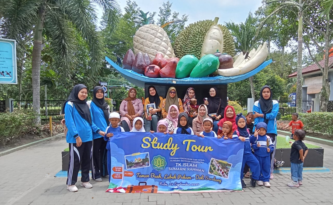 GIMIC.ID, DELI SERDANG – Yayasan Pendidikan dan Sosial Sumarni Rahman Syahputra melalui TK Islam Sumarni Rahman menggelar kegiatan study tour ke Taman Buah Lubuk Pakam, Kabupaten Deli Serdang, Rabu (24/9/2025). Kegiatan ini diikuti siswa-siswi, guru pendamping, serta orang tua murid dalam rangka pembelajaran luar kelas yang menyenangkan sekaligus edukatif.