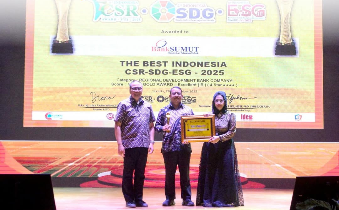 Dalam ajang tersebut, Bank Sumut berhasil meraih Gold Award The Best Indonesia CSR-SDG-ESG 2025 untuk kategori Regional Development. Penghargaan ini diberikan atas komitmen Bank Sumut dalam mengintegrasikan program Corporate Social Responsibility (CSR) dengan prinsip Sustainable Development Goals (SDGs) serta Environmental, Social, and Governance (ESG).