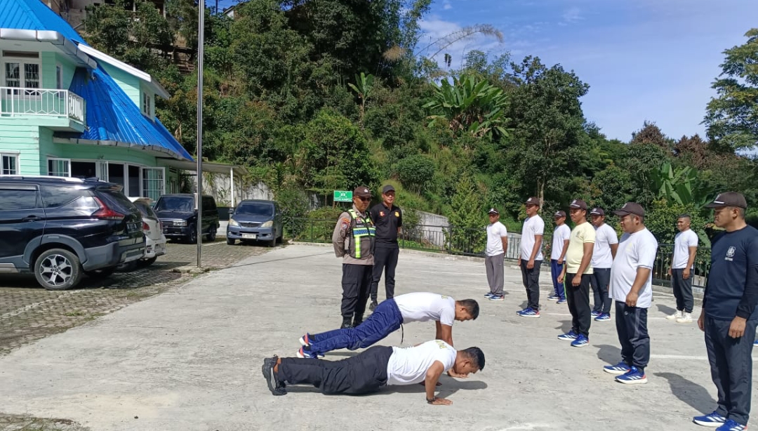 Personel security PLN UP3 Bukit Barisan mengikuti kegiatan Upskilling Security bersama Polres Tanah Karo di Karo, Sabtu (27/9/2025).