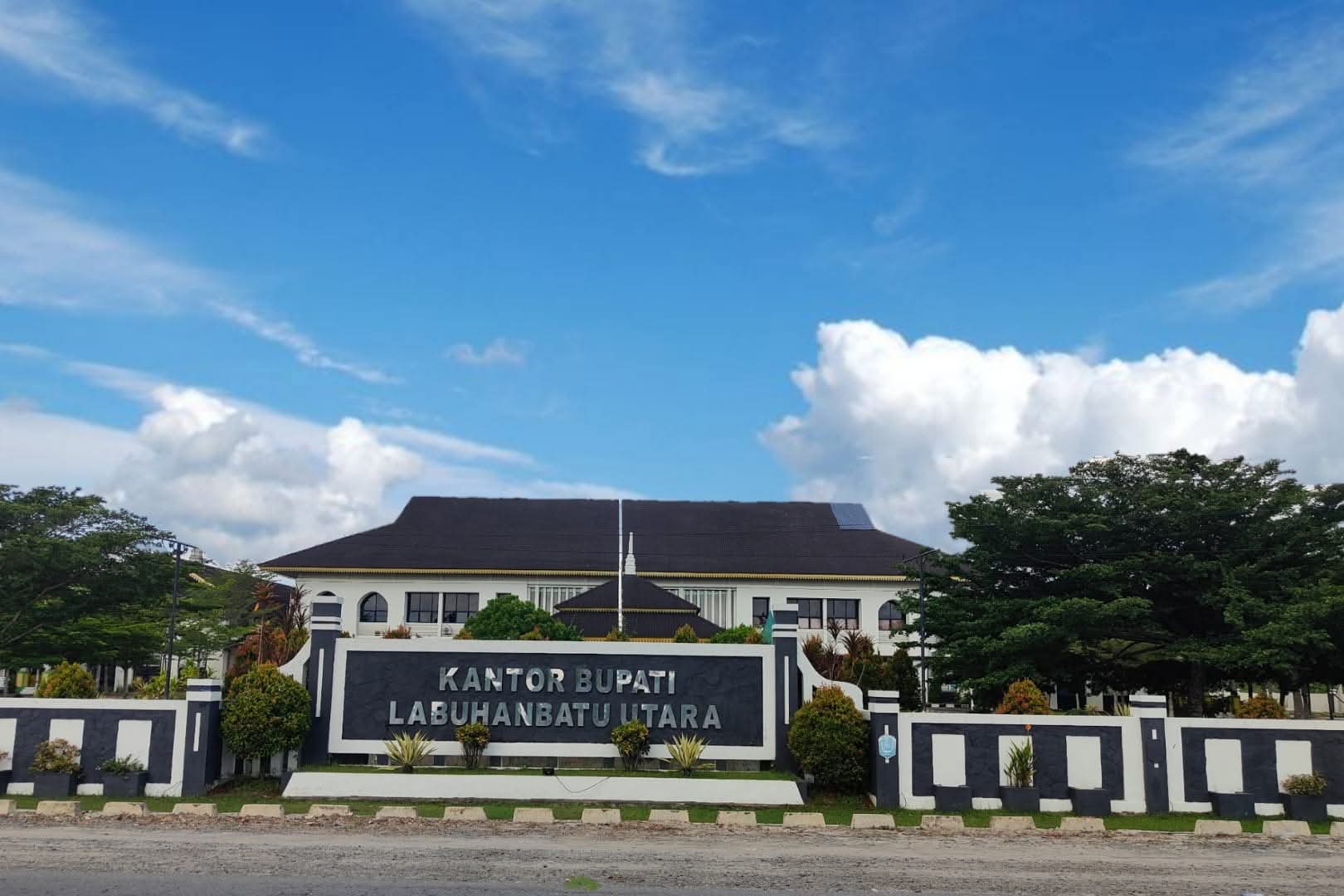 Kantor Bupati Labuhanbatu Utara, tempat penyelenggaraan pemerintahan daerah yang kini menjadi sorotan publik usai munculnya dugaan korupsi proyek infrastruktur senilai Rp95 miliar.