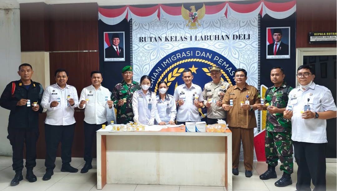 GIMIC.ID, LABUHAN DELI – Dalam rangka mewujudkan lingkungan kerja yang bersih dari penyalahgunaan narkoba, Rumah Tahanan Negara (Rutan) Kelas I Labuhan Deli melaksanakan kegiatan tes urine massal bagi seluruh pegawai serta 30 orang warga binaan pemasyarakatan (WBP).