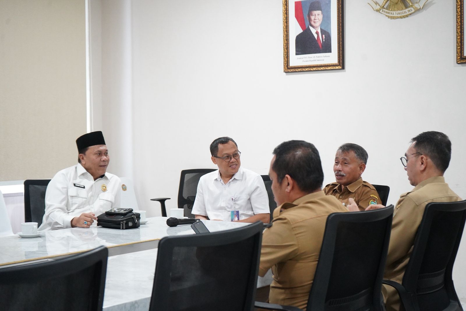 Kepala Kanwil Kemenag Sumatera Utara H. Ahmad Qosbi mendampingi Kepala Biro Umum dan Keuangan BPJPH RI dalam pembahasan pendirian UPT Halal bersama Pemprov Sumut.