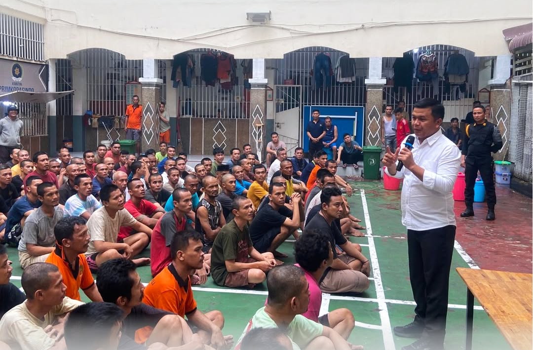 GIMIC.ID, LABUHAN DELI – Kepala Kesatuan Pengamanan Rutan (KPR) Kelas I Labuhan Deli, Warismen Sihotang, melaksanakan kegiatan sosialisasi dan pengarahan kepada warga binaan pemasyarakatan (WBP) di blok hunian Rutan Kelas I Labuhan Deli, Kamis (9/10).