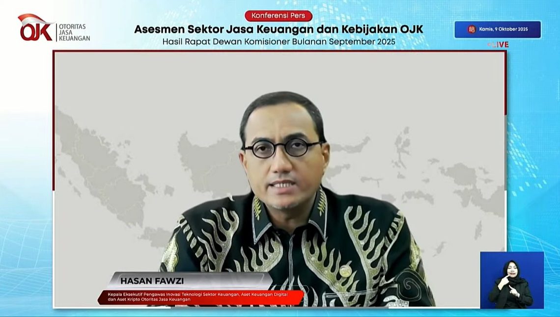 Kepala Eksekutif Pengawas Inovasi Teknologi Sektor Keuangan, Aset Keuangan Digital, dan Aset Kripto Otoritas Jasa Keuangan (OJK), Hasan Fawzi, memaparkan perkembangan sektor aset digital dalam konferensi pers Asesmen Sektor Jasa Keuangan dan Kebijakan OJK hasil Rapat Dewan Komisioner Bulanan September 2025, Kamis (9/10/2025).