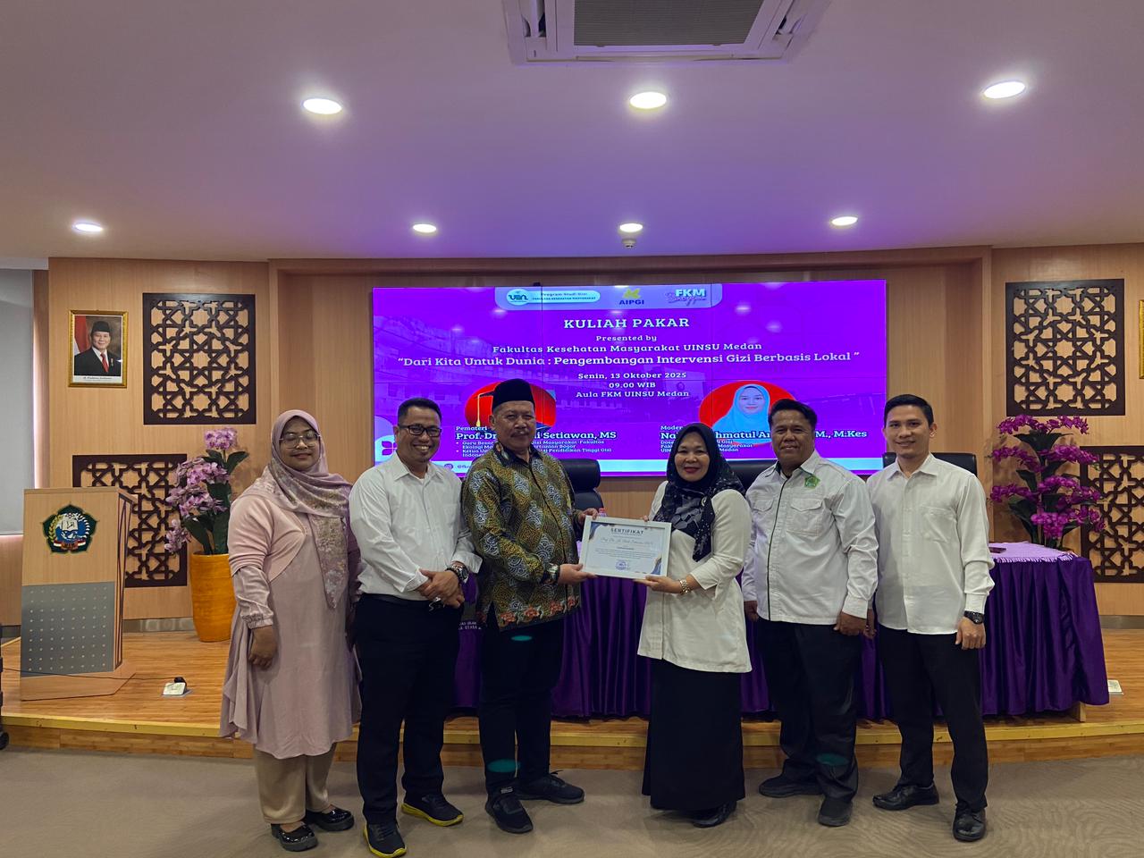 GIMIC.ID, MEDAN — Fakultas Kesehatan Masyarakat Universitas Islam Negeri Sumatera Utara (FKM UINSU) menggelar Kuliah Pakar Gizi yang menghadirkan narasumber nasional terkemuka, Prof. Dr. Ir. Budi Setiawan dari Institut Pertanian Bogor (IPB), sekaligus Ketua Umum Asosiasi Institusi Pendidikan Gizi Indonesia (AIPGI). Kegiatan berlangsung di Aula Utama Kampus IV FKM UINSU, Senin (13/10/2025).