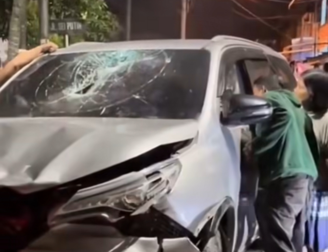 GIMIC.ID, MEDAN — Sebuah video viral di media sosial memperlihatkan mobil Toyota Fortuner abu-abu tanpa pelat nomor dengan kondisi hancur di bagian depan. Peristiwa yang diduga sebagai tabrak lari itu disebut-sebut menimbulkan korban jiwa dan terjadi di kawasan Pajak USU, Jalan Jamin Ginting, Medan, pada Sabtu (18/10/2025) dini hari.