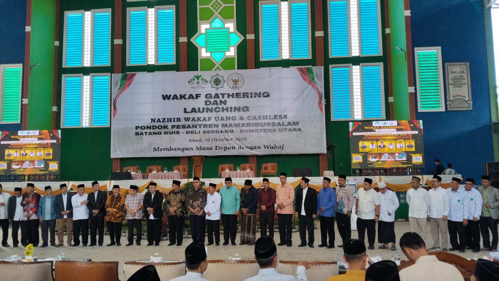 GIMIC.ID, BATANG KUIS — Pondok Pesantren (Ponpes) Mawaridussalam Batang Kuis menggelar kegiatan “Wakaf Gathering dan Launching Nazhir Wakaf Uang dan Cashless” dengan tema “Membangun Masa Depan dengan Wakaf”, Minggu (19/10/2025).