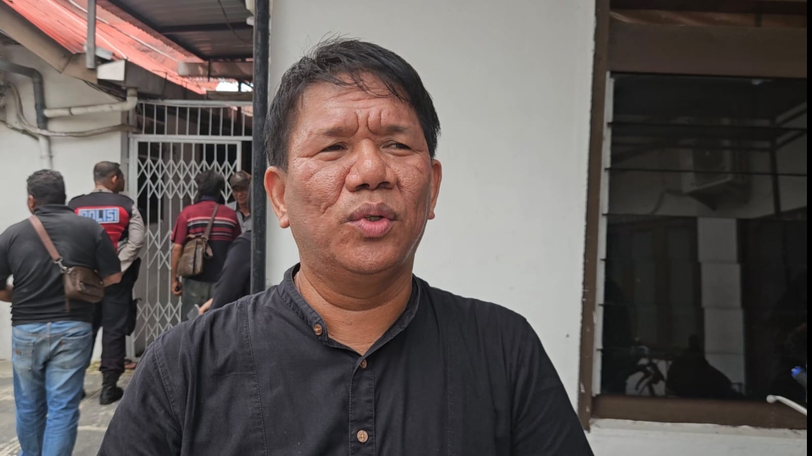 Penasehat Hukum Rahmadi, M. Ronald Siahaan, S.H., M.H., memberikan keterangan kepada wartawan usai sidang di Pengadilan Negeri Tanjungbalai, Minggu (26/10/2025).