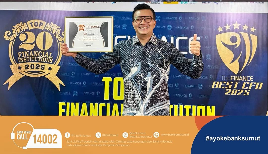 Bank kebanggaan masyarakat Sumatera Utara ini berhasil meraih penghargaan Top 20 Financial Institution 2025 kategori Bank Beraset Rp25 Triliun–Rp50 Triliun dengan predikat “Sangat Bagus”, serta penghargaan The Finance Best CFO 2025 yang dianugerahkan kepada Arieta Aryanti, selaku Direktur Keuangan dan Teknologi Informasi Bank Sumut.