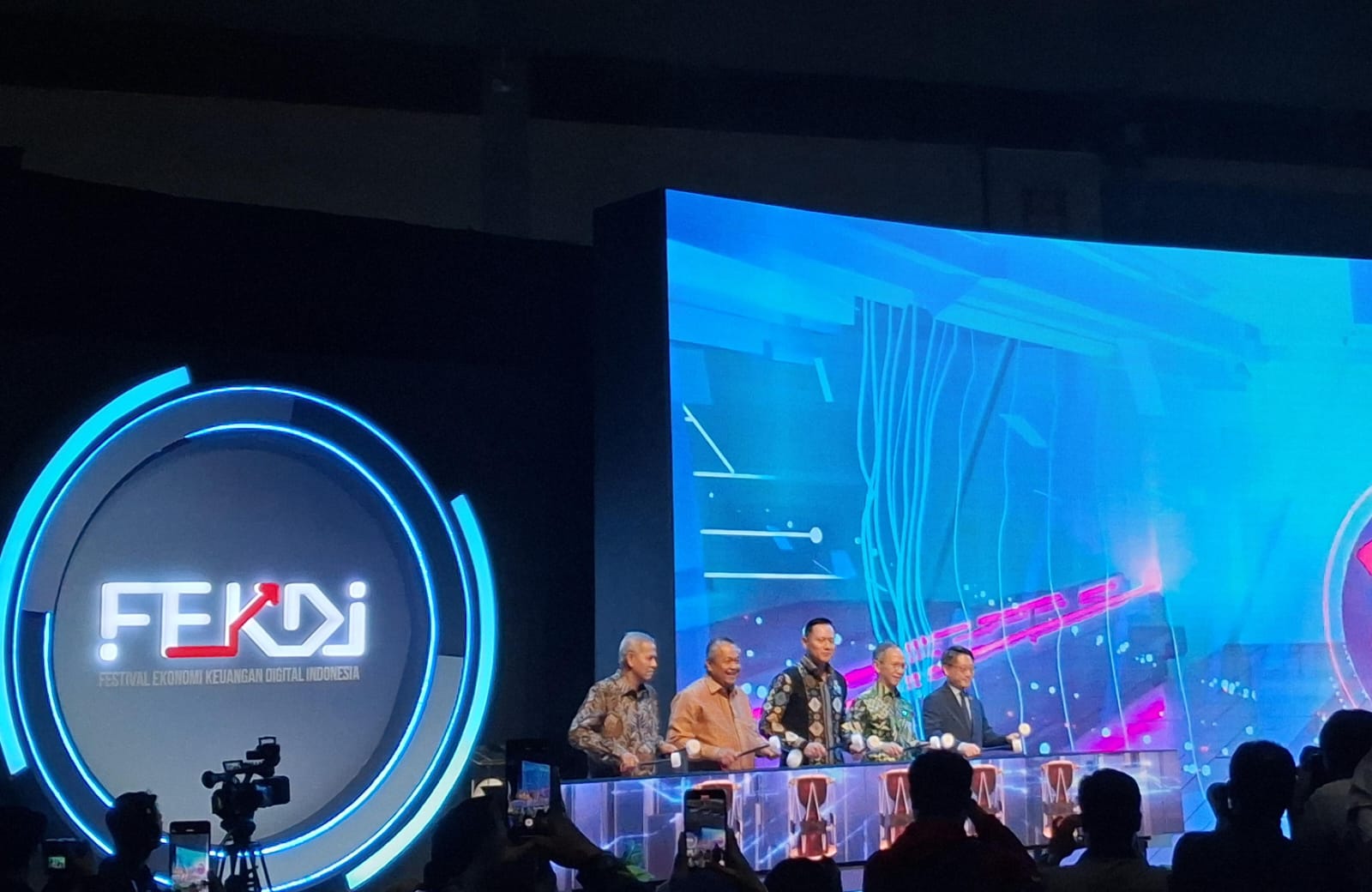 Gubernur Bank Indonesia Perry Warjiyo bersama sejumlah pejabat membuka Festival Ekonomi dan Keuangan Digital Indonesia (FEKDI) 2025 yang bersinergi dengan Indonesia Fintech Summit and Expo (IFSE) di JCC Senayan, Jakarta, Rabu (30/10/2025).