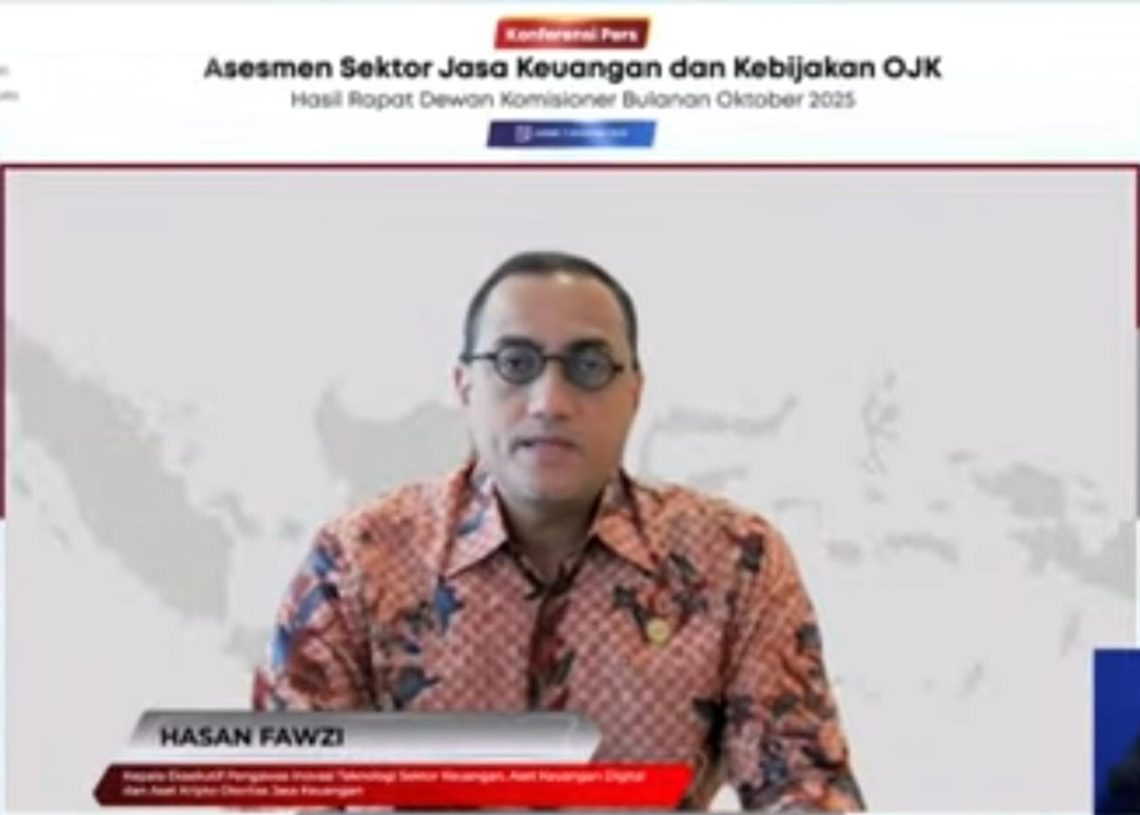 Kepala Eksekutif Pengawas Inovasi Teknologi Sektor Keuangan, Aset Keuangan Digital, dan Aset Kripto OJK, Hasan Fawzi, saat menyampaikan paparan dalam konferensi pers hasil Rapat Dewan Komisioner (RDK) OJK secara virtual, Jumat (7/11/2025).