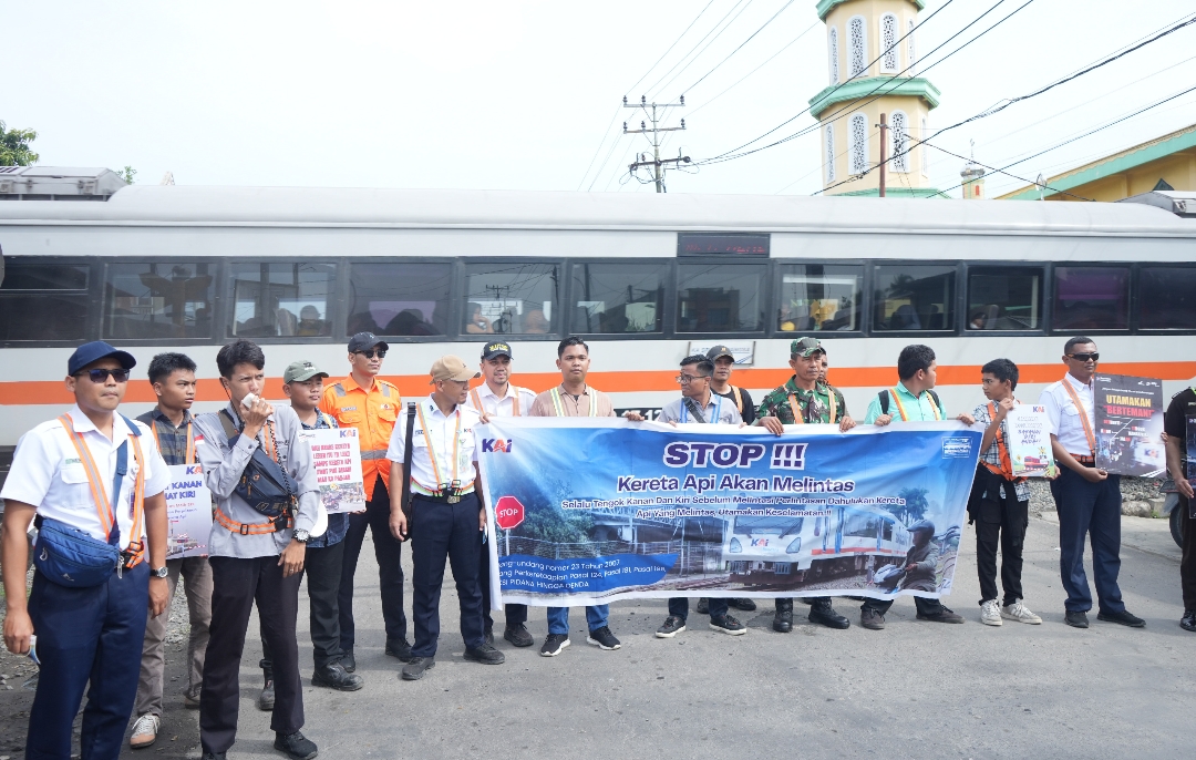 KAI Sumut dan Komunitas Railfans Gencarkan Sosialisasi Keselamatan di Perlintasan Sebidang Kota Binjai