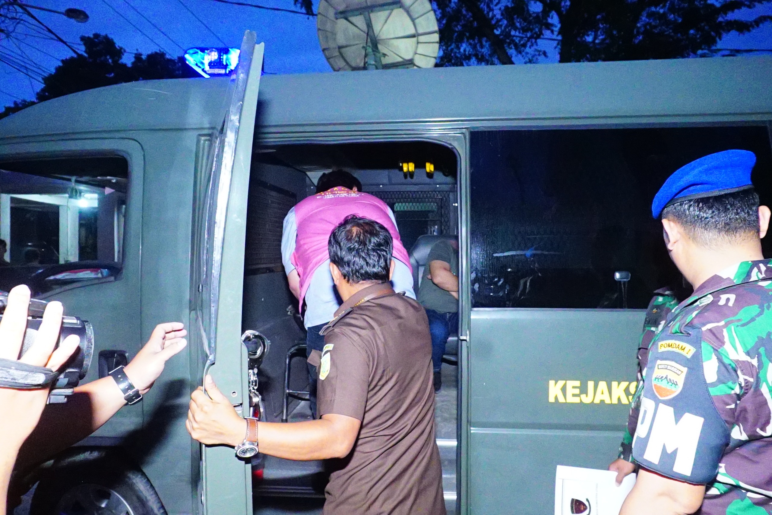 Petugas Kejaksaan Tinggi Sumatera Utara mengawal tersangka berinisial LPL saat dibawa menggunakan mobil tahanan usai menjalani pemeriksaan di Medan, Jumat (8/11/2025).