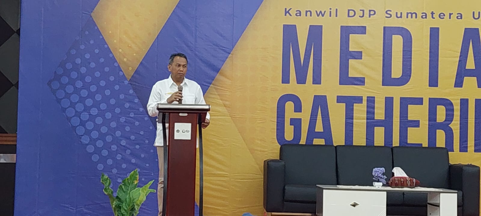 Kepala Kanwil DJP Sumut I menyampaikan pemaparan pada kegiatan Media Gathering 2025 yang digelar di Aula Lantai 8 Kanwil DJP Sumut I, Medan.