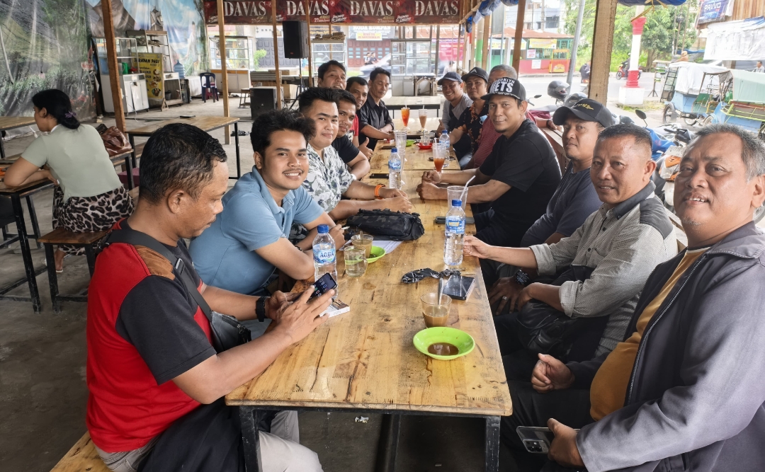 Para anggota Forum Wartawan Unit (Forwatun) mengikuti rapat bulanan di Warkop IMKA, Medan Tuntungan, Sabtu (15/11/2025), untuk membahas agenda audiensi dan rencana investigasi lapangan.