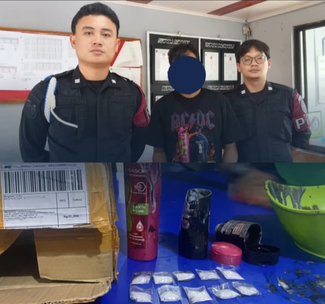 Saat penggeledahan, petugas menemukan 10 bungkusan berisi kristal putih yang diduga kuat merupakan sabu, yang disembunyikan di dalam dua botol sampo.