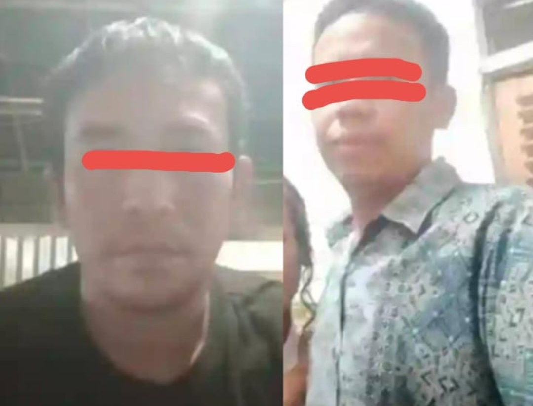 Dua pria yang diduga sebagai tersangka dalam kasus dugaan kekerasan seksual terhadap anak di Kabupaten Simalungun.