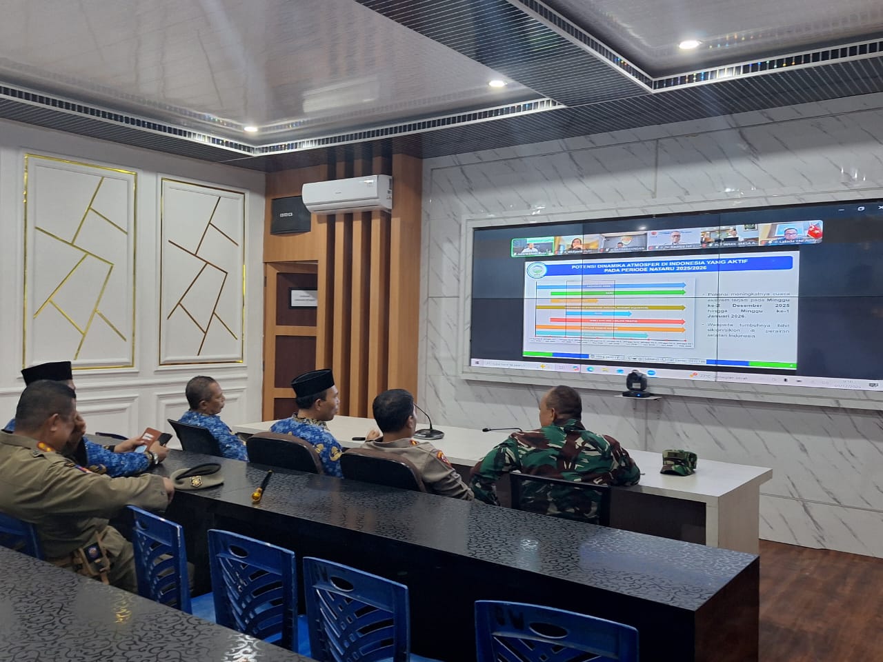 Forkopimda Kota Tanjungbalai mengikuti rapat koordinasi virtual bersama Mendagri dari Aula Command Center untuk mematangkan persiapan pengamanan Nataru 2025/2026.