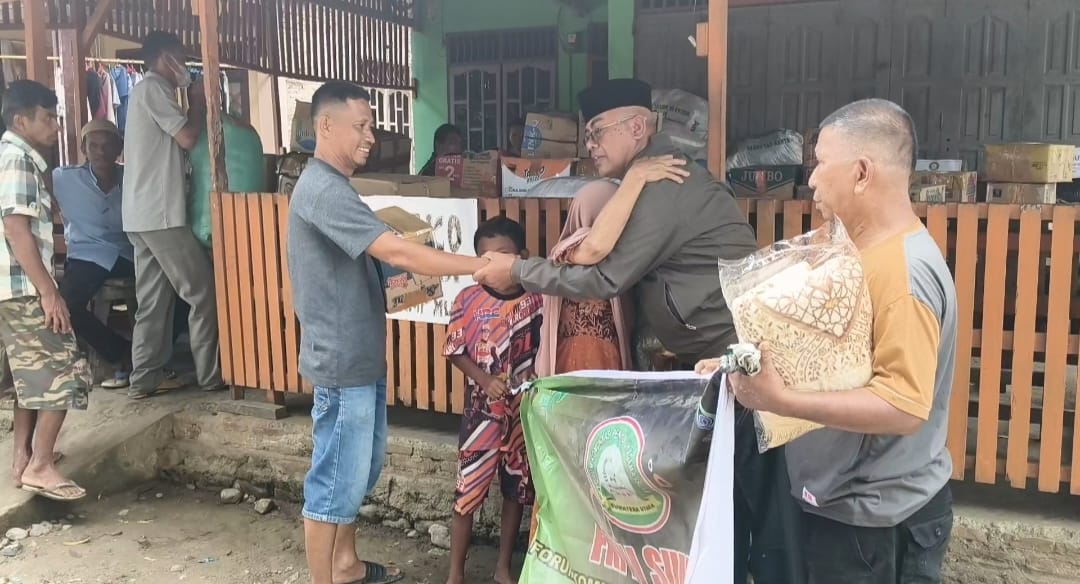 Momen haru mewarnai penyaluran bantuan FKPAI Sumut di Kecamatan Barus, Kabupaten Tapanuli Tengah, Kamis (11/12/2025). Penyerahan bantuan dilakukan secara dadakan setelah tim menerima informasi bahwa empat desa di wilayah tersebut terdampak banjir paling parah, yakni Desa Mudik, Desa Kinali, Desa Ujung Batu, dan Desa Bunga Tanjung.