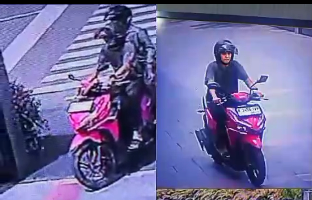 Dari hasil rekaman CCTV, terlihat dua orang pelaku yang mengenakan helm saat melancarkan aksinya. Kedua pelaku datang dan meninggalkan lokasi menggunakan sepeda motor Honda Vario warna merah dengan nomor polisi B 3456 TFP.
