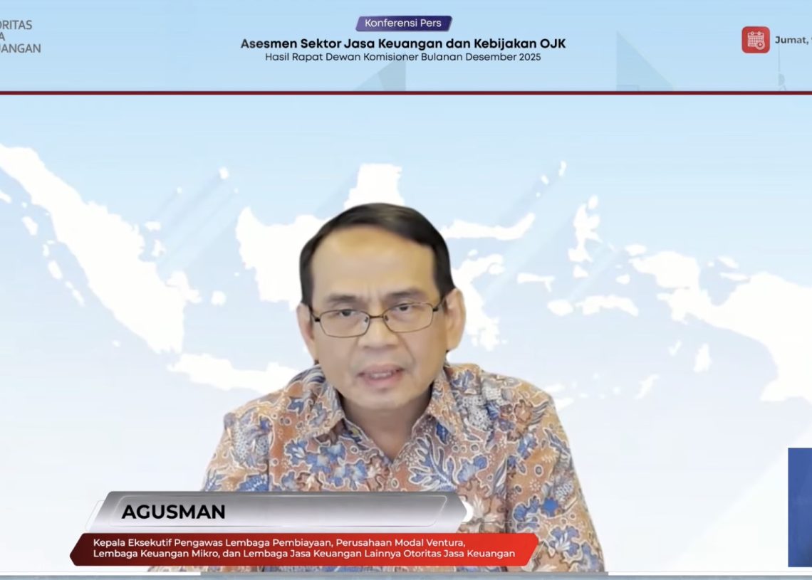 Kepala Eksekutif Pengawas Lembaga Pembiayaan, Modal Ventura, dan Lembaga Keuangan Lainnya (PVML) OJK Agusman menyampaikan paparan kinerja industri pinjaman daring dalam konferensi pers hasil Rapat Dewan Komisioner (RDK) OJK yang digelar secara virtual, Jumat (9/1/2026).