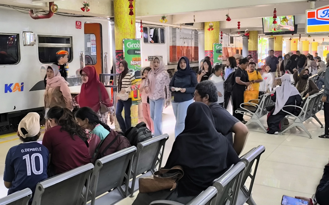 Penumpang memadati Stasiun Medan saat libur panjang Isra Mikraj 1447 Hijriah, Kamis–Jumat (15–16/1/2026), seiring meningkatnya jumlah pengguna jasa kereta api di Sumatera Utara.