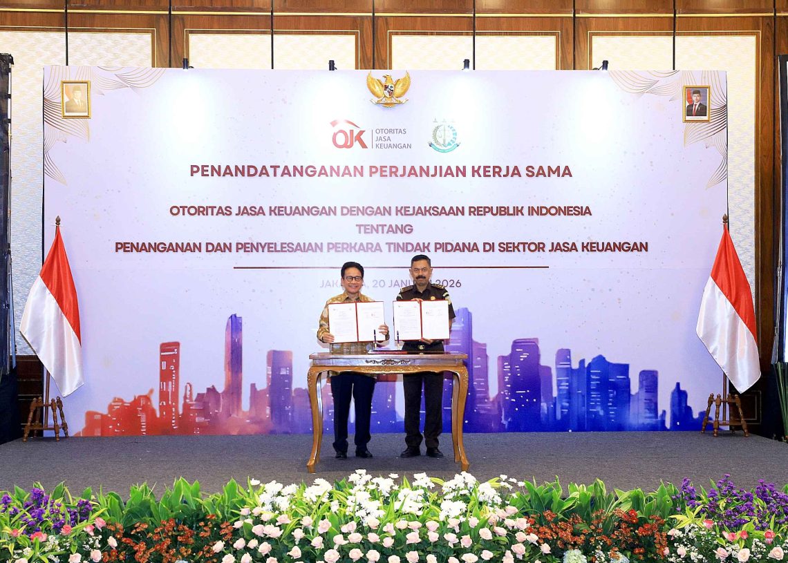 Otoritas Jasa Keuangan (OJK) dan Kejaksaan Republik Indonesia menandatangani Perjanjian Kerja Sama (PKS) tentang penanganan dan penyelesaian perkara tindak pidana di sektor jasa keuangan di Jakarta, Selasa (20/1/2026), sebagai komitmen memperkuat sinergi penegakan hukum.