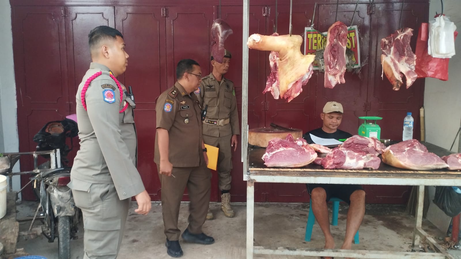 Petugas Satpol PP bersama aparat terkait melakukan peninjauan lapak penjualan daging di kawasan Medan, menyusul surat peringatan penertiban dari Pemko Medan.