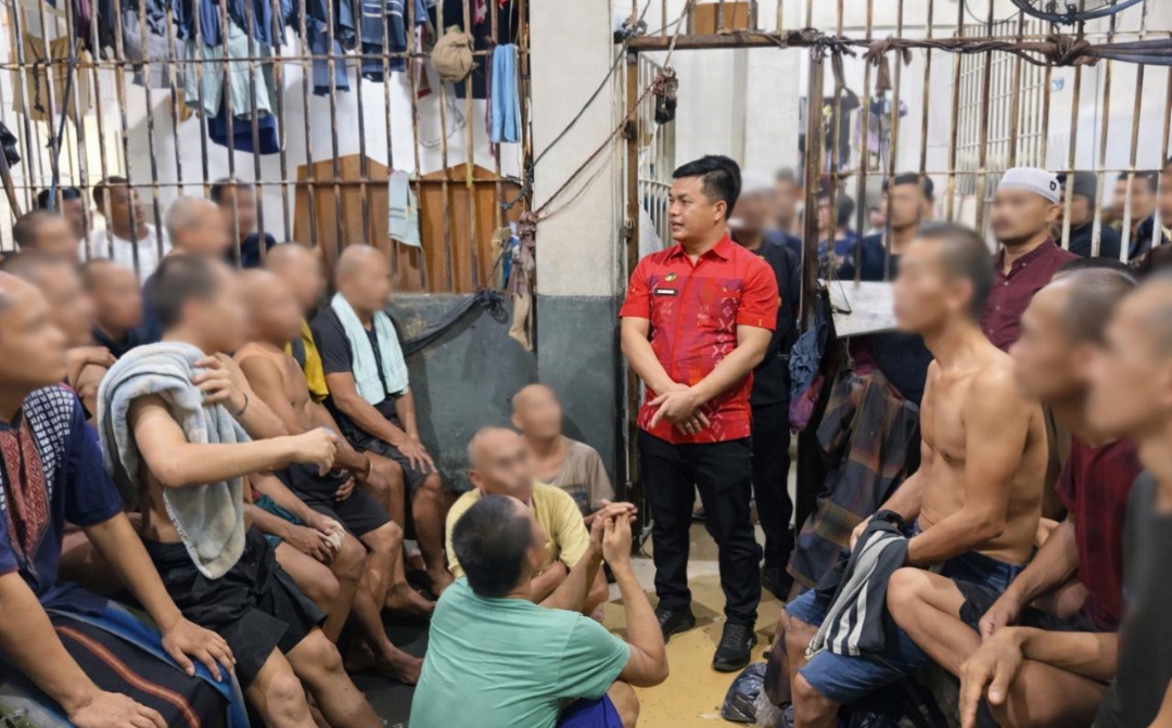 Petugas Rutan Kelas I Labuhan Deli berdialog langsung dengan warga binaan di blok hunian sebagai bagian dari pendekatan humanis untuk menjaga keamanan dan pembinaan yang kondusif.