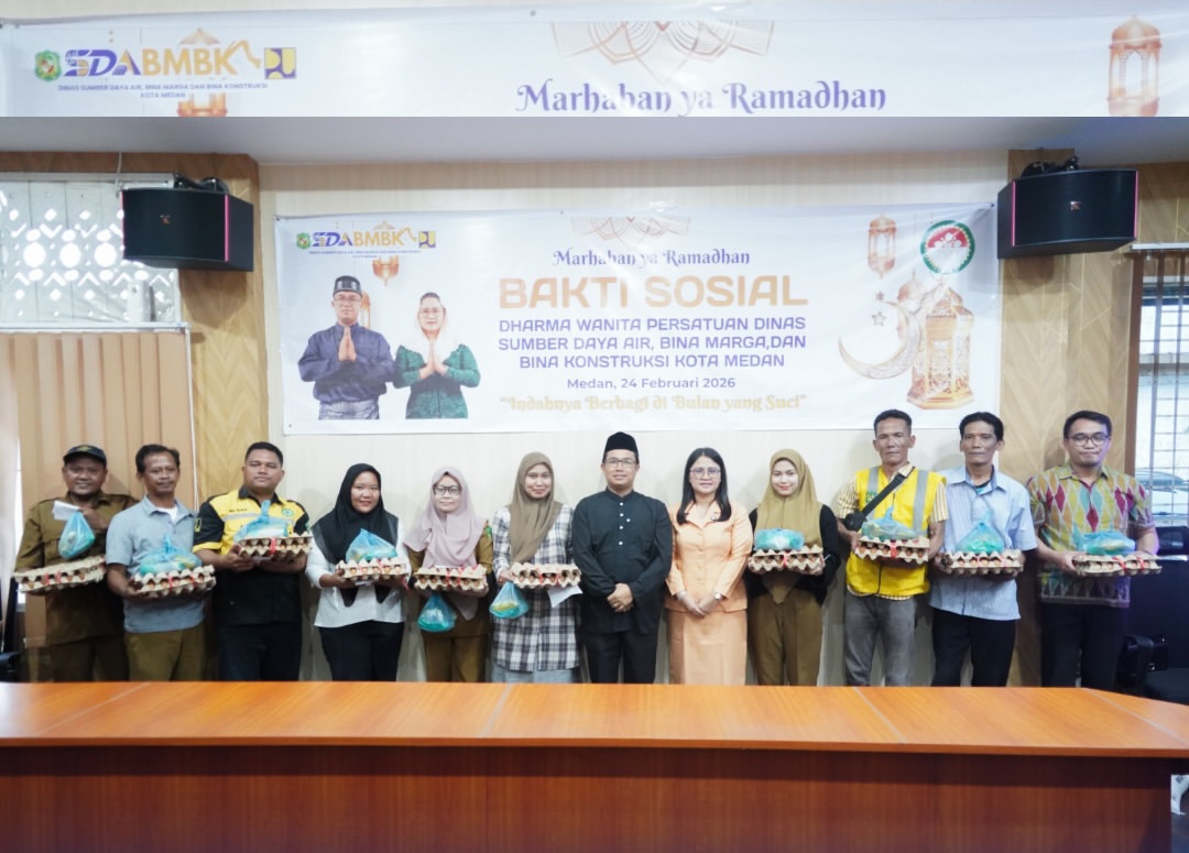 GIMIC.ID, MEDAN – Dharma Wanita Persatuan (DWP) Dinas Sumber Daya Air, Bina Marga dan Bina Konstruksi (SDABMBK) Kota Medan menggelar kegiatan bakti sosial yang dirangkaikan dengan acara pisah sambut Pelaksana Tugas (Plt) Kepala Dinas SDABMBK serta Ketua Dharma Wanita Persatuan, Selasa (24/02/2026).