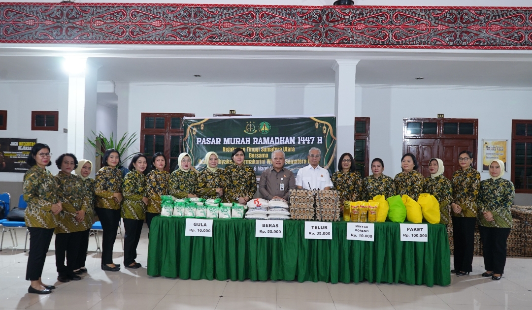 GIMIC.ID, MEDAN – Kejaksaan Tinggi Sumatera Utara bersama Ikatan Adhyaksa Dharmakarini (IAD) Wilayah Sumatera Utara menggelar pasar murah Ramadan untuk membantu masyarakat mendapatkan bahan pangan pokok dengan harga terjangkau. Kegiatan tersebut berlangsung di Adhyaksa Hall lantai I Kejati Sumut, Jalan Jenderal Besar AH Nasution, Medan, pada Jumat (6/3/2026).