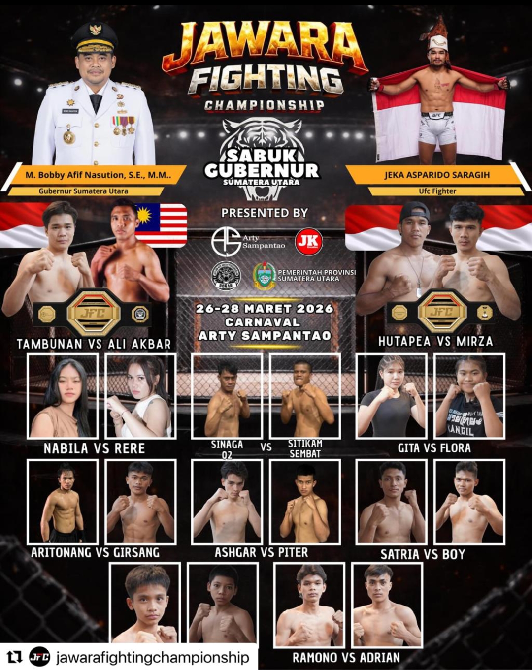 “Kami dari Bonar Indonesia mendukung penuh kegiatan ini dan berharap JFC Season 2 dapat menjadi momentum penting dalam perkembangan olahraga bela diri di Sumatera Utara,” tambahnya.
