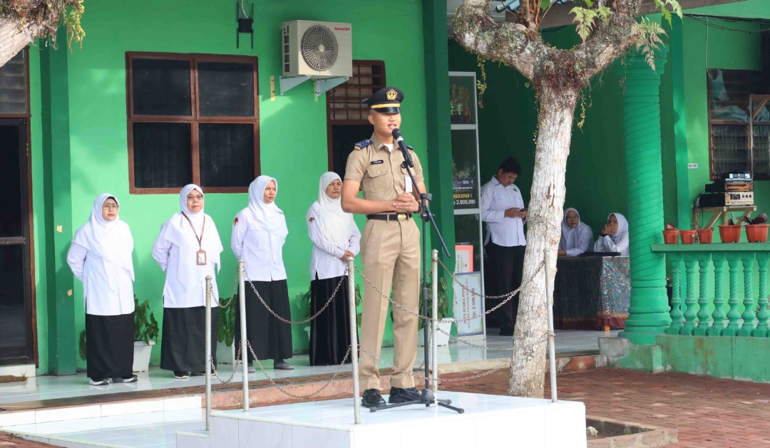 Alumni Madrasah Aliyah Negeri Asahan, M. Irfan Hafidz, memberikan motivasi kepada para siswa usai apel pagi di lingkungan madrasah. Kehadirannya sebagai Praja Institut Pemerintahan Dalam Negeri menjadi inspirasi bagi peserta didik untuk terus berjuang meraih cita-cita.