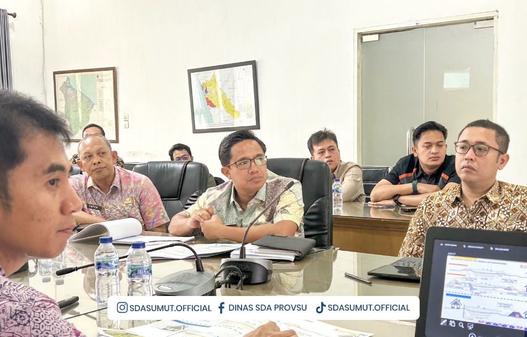 Plt Kepala Dinas Sumber Daya Air Sumut, Gibson Panjaitan, memimpin rapat koordinasi bersama jajaran dan perwakilan Balai Besar Wilayah Sungai Sumatera II dalam upaya memperkuat sinergi penanganan pascabencana di Sumatera Utara.