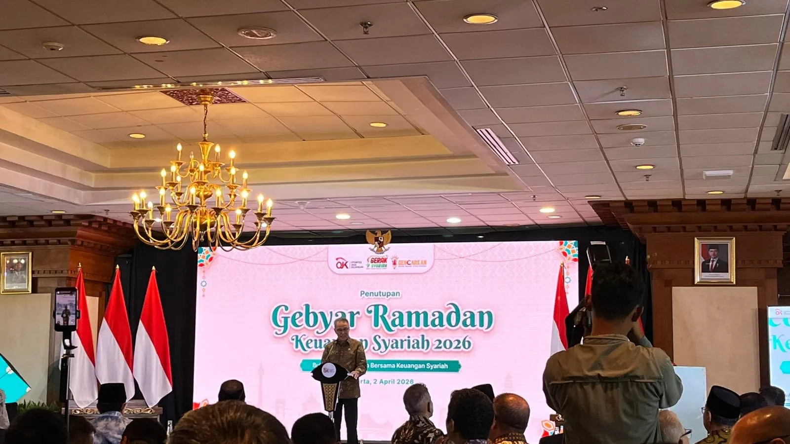 Pejabat Otoritas Jasa Keuangan menyampaikan sambutan dalam acara penutupan Gebyar Ramadan Keuangan Syariah (GERAK Syariah) 2026 di Jakarta, Kamis (2/4/2026).